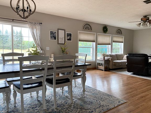 Stunning 3bdr, 3+ bath home located on 10 acres! Home features open floor plan, large living room, formal dining, and gourmet kitchen. Spacious master suite with walk in closet. On the other side of this home there are 2 more bedrooms with their own personal bathrooms! Bright, classy entry, 2 plus car attached garage, additional 16x52 pole building with wood burning stove for efficient heat! Private setting off the road for children and pet safety! Back yard patio with fenced in area.