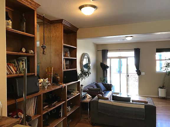 Wonderful Water Tower Village rowhome with vaulted ceilings and tons of storage added throughout! Walk to light rail, amazing Olde Town Arvada shops, dining, movie theater, library, and more! Enter to ground floor office with built-in desk and cabinetry and attached garage with built-in storage shelving. Second level offers kitchen with pantry, breakfast nook/office space, 1/2 bath, open concept living/eating space, and beautiful custom floor-to-ceiling shelving for entertainment center and all you want to display. Top level offers two large bedrooms, both with en-suite baths and walk-in closets. Full size washer and dryer in hallway between bedrooms. Property available for tours. Available 1/5/23 Property also has HOA which covers trash, sewer, and water, groundskeeping, and workout/pool. Tenant pays utilities and contributes to HOA fee. Longer term lease available if desired. Pets negotiable and require a deposit.