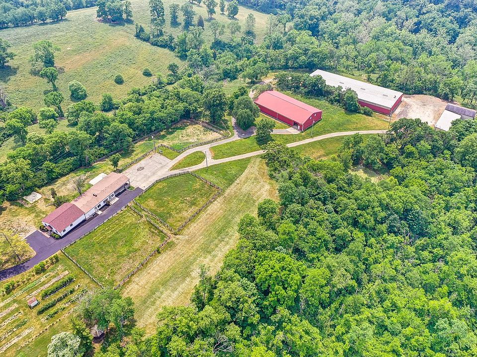 40 acre horse farm with renovated 4 bedroom, 2.5 bath home. Property features 30 stall barn with office, tack room, hay lofts, and multiple storage spaces. Indoor riding arena with viewing space, storage, and bathroom and garage/workshop with three separate sections including potential living area. All buildings have electric and water, can be tied into septic system. Wooded areas feature multiple ponds and trails. Fenced in pasture area with additional cleared area to add on. RV/trailer hookups available.