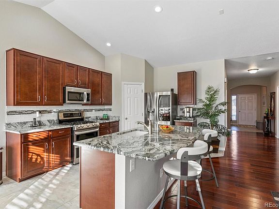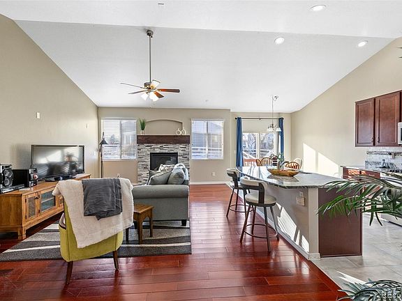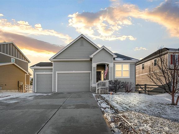 This Ranch style home is nestle in the beautiful hills of the Crystal Valley neighborhood in Castle Rock. It features a three car garage, two bedrooms and a large main floor office with private glass French doors. Office could be used as a this bed, it does have a closet. The Primary bedroom has an attached 5 piece bath and walk in closet. Main floor is open with vaulted ceilings, newer cherry wood flooring, carpet, and a gas fireplace. The kitchen has built in microwave, gas range, double oven, Orinoco granite slab island, and counter tops. Laundry room is on the main floor. Lot's of natural light that shines through and newer carpet. The basement is unfinished with an open floorpan.