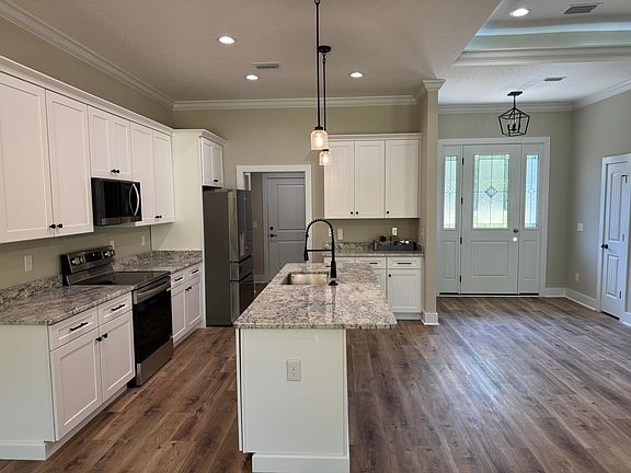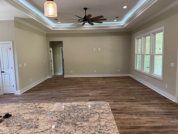 New Construction ready to move in, 4 bedroom 2 baths oversized 2 car garage on 1 acre.Builder thought of everything, 10-foot ceilings with trays in great room and master bedroom, both have rope lighting. Master closet has built in shelving with access to the laundry room. All cabinets are soft close, large, covered porch, oversized driveway, and sprinkler system,