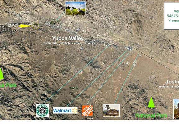 Welcome to 54575 Navajo Trail, located in the heart of beautiful Yucca Valley. Build your dream home on this almost half an acre of land that offers living experiences unparalleled, with breathtaking views and utilities just across the street. Work hard - play hard, but relax easy! Upscale houses in the area, restaurants, cafes, supermarkets, banking and more, all a short drive from your land. Even an amazing golf course in the desert! Joshua Tree is just a few minutes away and parcel is near the 62,allowing for easy access to all the desert has to offer. Lovely mountains and open land border the south side of this parcel which means unobstructed views and quiet, starry nights! Explore the possibilities of this conveniently located parcel today!