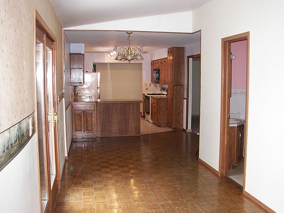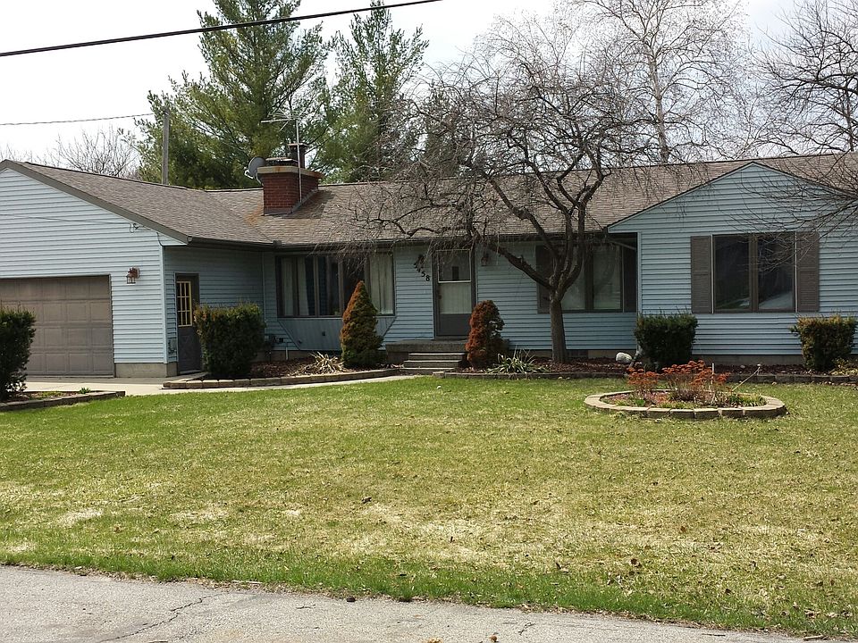 This very nice home sits on a 1/2 acre lot. Carpeting is brand new in most areas. Andersen casement windows. Bedroom 1 size is 9 x 10.5. Bedroom 2 size is 10 x 11. Master bedroom is 11 x 15. Nice large living room measures 12.5 x 18 with wood burning fireplace. Roomy kitchen area has custom built solid oak cabinetry. Even the shelves are oak! Dining room has oak parquet flooring. Expansive basement, partially finished and insulated, that is divided into many rooms. One large area could be used for a 4th bedroom or family room. Exit the rear of the home through Andersen French doors onto a 12 x 36 foot, multi-level deck. You will now be viewing a 24 foot above ground pool that is one year old in a private yard. Beyond the fenced in yard sits about 200 acres of farmland. Large outbuilding for storage or shop with 10 x 24 covered patio attached.