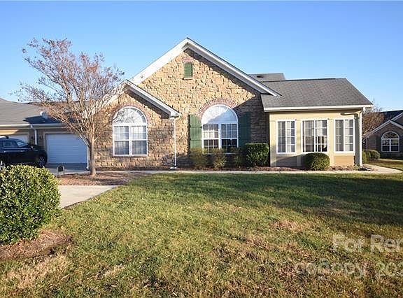 Ranch home with no steps at front entry. Large sunroom and large office, split bedroom plan, two car garage with additional parking pad area to turn around. Water & sewer paid by landlord. Tenant responsible for gas, electric, internet provider, any security desired. Convenient to I-485, grocery stores, restaurants. No carpet in property, only wood & tile, granite kitchen counters.