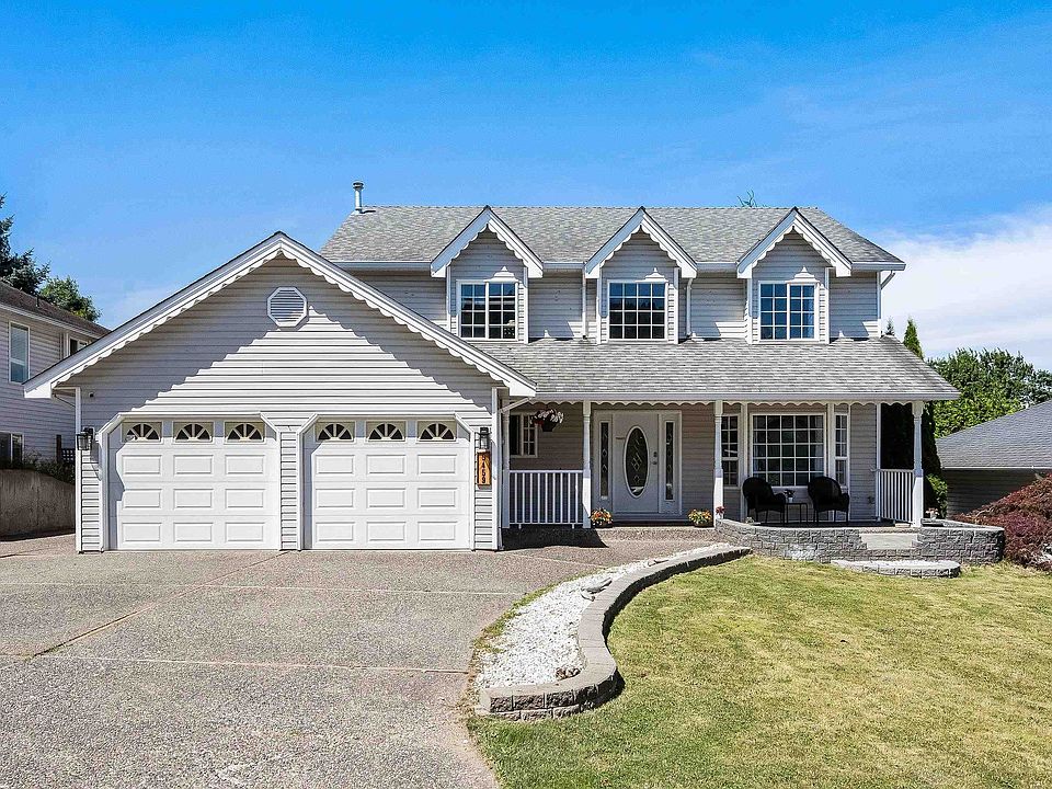 Wonderfully updated 2 story home on a large, fenced lot, w/ two car garage, large, flat driveway + RV parking & a 4' crawlspace. Beautiful hardwood floors, fresh paint & new baseboards, window & door trim throughout. On the main you'll find a living room, office space, & a laundry area leading to the open concept kitchen, dining & family room featuring a stone surround fireplace w/ built ins on either side. A large sunroom & updated powder room all on the main floor. Upstairs, an open to below hallway leads to your primary bdrm w/ 4 pc ensuite & walk-in closet. 3 more bdrms w/ large closets & another 4 pc bthrm complete upstairs. All located in the heart of Promontory. Walking distance to schools, parks, trails, restaurants & public transit. Close to shopping and UFV.