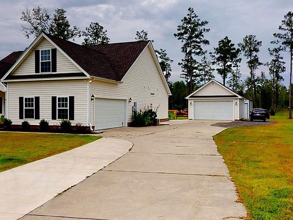 Are you looking for that perfect property with lots of land but still close to all the beach has to offer? This is it!!! Nestled on 6 acres with no HOA or restrictions, this beautiful estate has a 4 bedroom home that boasts a Mix of hardwood, ceramic tile, and carpeted floors. It has formal dining room with wainscoting accents & granite countertops in the kitchen. The master suite features a 5' shower, walk in closet, double bowl sinks, linen closet, crown moldings & oversized base boards. Situated behind the home is a 20x25 detached game room with a bar and a 40x25 detached steel building on concrete slab "work shop" & a natural spring pond. This property offers endless opportunity to make it your own.