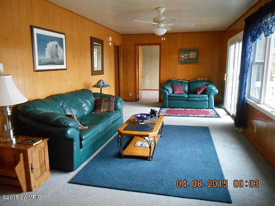 Beautiful Blue Lake walkout frontage! 60' of sandy swimming and great fishing Sit on the 10'x22' deck over looking the lake and take in the beautiful views.This stick built home can be year round or weekend getaway. It has been well taken care of & is in immaculate condition. This is not a drive by! Blue Lake is a private, 60 ft deep spring fed lake, no wake zone. This home has many updates which includes the shank metal roof, vinyl siding, fascia, soffit, windows, furnace, breaker service and much much more. Includes a 40'x24' garage w/ high ceilings & a 12x16 storage shed.Blue Lake is surrounded by 259 acres of private, association property with lots of walking trails. This can be especially appealing since no developing will ever be done keeping this location natural and lots of wildli