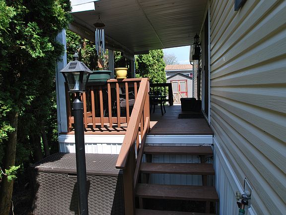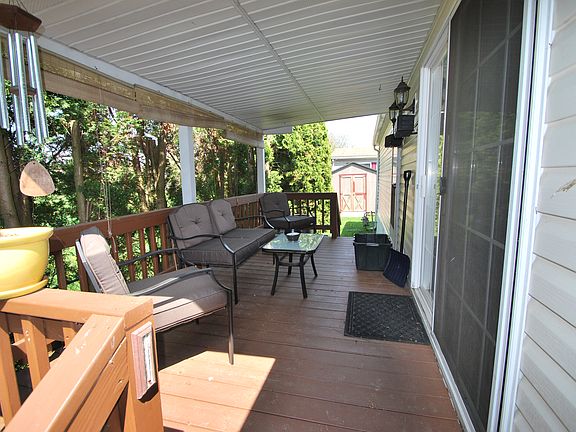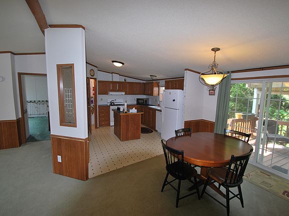 This a Double Wide Manufactured Home. With many upgrades. Working Fireplace with Fan Covered Deck Shed with new roof: 2017 Roof: Replaced 2013 30 year Architectural Shingles 3 feet of Ice Shield Ridge Vent Passive Rotary Roof Ventilators Deck and Front Entry Refinished Summer 2016 Front Entry: Tek deck and refinished railings Back Deck: Refinished Deck and Railings Furnace: Replaced 2017 Natural Gas, Air Conditioner: Maytag, Replaced 2013 Inside & Outside Lighting: All upgraded Kitchen with Center Island: Updated Appliances 2013 Sink: Kohler Enameled Cast Iron Sink with Kohler Faucet Dishwasher: Kitchenaid with Stainless Steel interior Stove: Maytag Gas with electronic ignition Refrigerator: Whirlpool Bathrooms: Master: Shower Facet upgrade to Kohler, and Toilet to Elongated Kohler Hall Bathroom: Refinished 2014 Walls replaced with new studding, new floor, and all fixtures upgraded. Floor: Porcelain tile Cabinets: Wood Lavatory: Kohler Vitreous China with Kohler Faucet, and Corian top Toilet: Kohler Elongated Tub: Enameled Steel with Kohler tub & Shower Faucet Carpets: TV Room: Berber with premium moisture and mildew resistant padding: 2013 Living Room, Dining Room, Main Hall: Berber with premium moisture and mildew resistant padding. 2016 TV Room: Built-in corner speakers for Entertainment Package worth $1,800. (For use with buyer system)