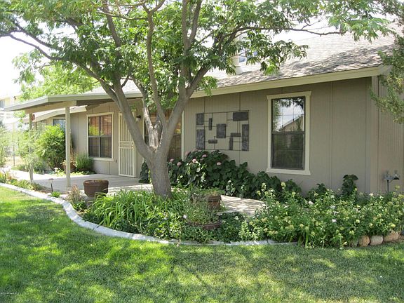 A cool, shaded oasis of trees, plants, walkways and patios all surround a beautifully cared for single family home in the heart of Prescott Valley, AZ. Pride of ownership fills this 3BR/2BA/2CG, 2X6'' framed, turn-key home. Fireplace, kitchen with new appliances, remodeled bathrooms, and stunning garden views out each main window. Enjoy sitting under the shaded pergola or covered patio. A wonderful home for entertaining with family room, kitchen/dining combo and all outdoor areas. Close to Prescott, AZ, home of the World's Oldest Rodeo, Arizona's Christmas City and charming courthouse square. NW of Phoenix, AZ, SW of Flagstaff. Prescott Valley has shopping, restaurants, an entertainment center (Arizona Sundogs hockey), hiking trails, college classes, large library, and more.