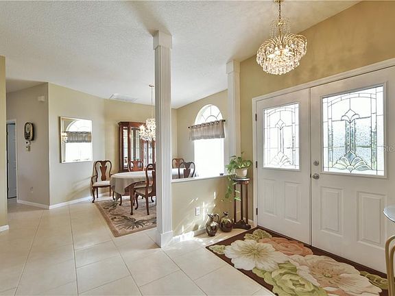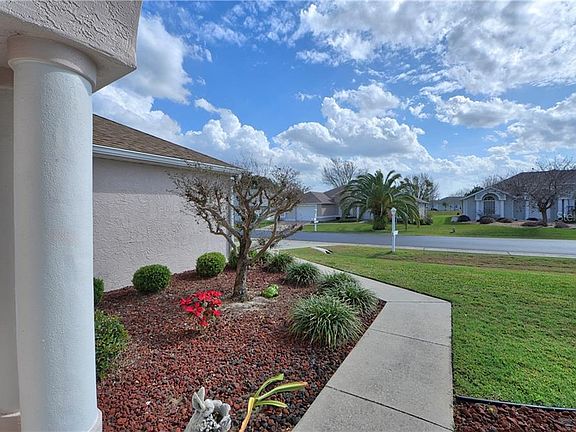 DESIREABLE 3BD/2BA house with landscaping and double door entrance which leads to tiled foyer and large living room with ceiling fan and dining rooms. Kitchen has Center Island, built-in microwave, time-saving dishwasher, side-by-side refrigerator, clear-top range, plenty of storage and view of Florida room from kitchen sink. Kitchen has eat-in area and pantry. Master bedroom has ceiling fan and walk-in closet. Master bathroom has double sink vanity with storage, walk-in shower, soaking tub and walk-in closet. Inside utility room has additional storage. Garage has pull-down ladder. Florida rooms has plenty of room and has a beautiful view of the Back yard which could be fenced for a dog. The back yard has an orange tree. House is 1.5 miles East of World Equestrian Center, Shopping and banks. All measurements are approximate. Buyer(s) should re-measure.
