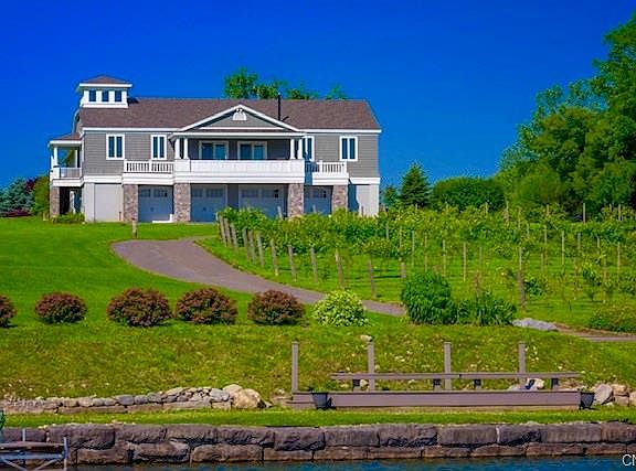 Lake front property with private vineyard! Great opportunity to try your skills at winemaking with these award winning grapes! This home is located on the West side of Owasco Lake with 100' of lake frontage. You have 2 beds and a full bath on one side of the house and another 2 beds and 1.5 on the other, large Kitchen and dining rooms that are great for entertaining. Sit in the hot tub on the covered porch and enjoy your own slice of heaven or sit on one of the 2 decks and soak in a breathtaking view of the lake! Second floor observation room. Extremely efficient gas & electric (heating and cooling).