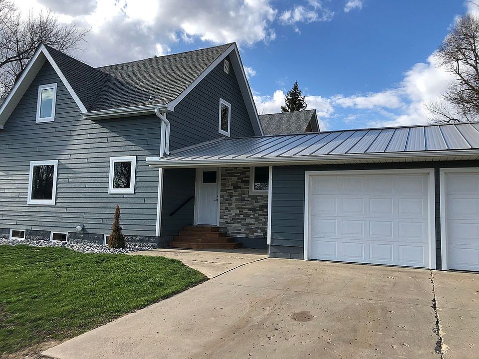 This beautiful 2 story home has been redone from top to bottom....new flooring, new lighting, new windows, new paint, all new paneled doors and painted white woodwork throughout. The kitchen has also been completely refinished with brand new hickory cabinets and a great sized island! The main floor is a very open concept from the kitchen to the living room, includes 2 bedrooms, a full bathroom and a large laundry area. The upstairs of this home is also completely remodeled and includes 2 bedrooms with walk in closets, a bathroom and 2 more spacious storage areas. Off the Kitchen is main floor laundry, half bath and lovely mud room. A double garage and newly landscaped lawn completes the property!