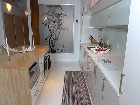 THE CRANE BUILDING (est. 1911). Experience heritage-inspired living in one of the most stylish units at Crosstown's most iconic modern warehouse conversion (impeccably converted by Townline circa 2008). Exposed brick walls, lofted ceilings, timber beams, and original window frames set a rich industrial-chic tone, while unique custom features include a magnificent floor-to-ceiling glass sliding wall with custom black-out drapes that close off the bedroom, a giant artistically etched interior window, sleek custom kitchen cabinetry, and a gorgeous wood kitchen island. The large den/flex room can be storage, studio or work-space, plus there is a perfect tucked-away home office nook. RARE for Crosstown/Gastown: easily accessible parking spot and oversized storage locker. Open Sat 1-4.