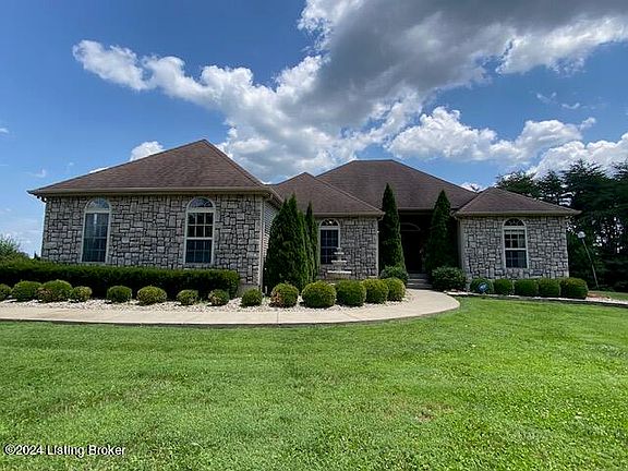Plenty of room to roam both inside & out with this amazing property in the country located in the Bourbon Capital of the World, historic Bardstown, Ky. Don't miss your chance to own this pristine property at 546 Burba Road. Spacious & comfortable three bedroom two & a half Bath stone & vinyl ranch style home with large 4 car detached garage with office on ten beautiful acres in the country. This impressive home offers 2948 sq. ft. of living space all on one level with impressive hardwood entryway that leads into the Living Room with lovely hardwood floors, arched openings & 14' ceilings. Additional living area is offered in the lovely Den that also features those amazing hardwood floors. Eat in Kitchen offers an abundance of lovely cabinetry, stainless appliances & granite countertops. Separate formal dining room is perfect for large gatherings. Tiled Laundry Room & Half Bath off the Kitchen/Den with wood floors. Oversized Primary Bedroom suite offers hardwood floors & large walk in closet & walks out onto the covered back porch. Tiled Primary Bathroom with jacuzzi tub & separate walk in shower. The wonderful covered back patio area with gazebo leads you to the sparkling inground pool perfect for those hot summer days. Rod iron fencing is featured around the pool area. Pool house with sitting room, Bathroom with shower, toilet & tub along with wet bar area allows your guests the perfect place to get ready to enjoy the pool. Nice outbuilding with electric completes this lovely property. You won't want to miss this amazing opportunity to own this executive home in the country! Direct fiber optic internet available. Let's go take a look today!
