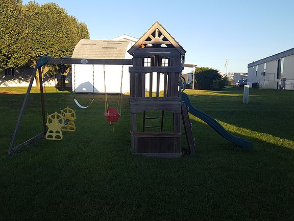 2001 Dutch mobile home with 3 bedrooms, 2 bathrooms, family room, kitchen, and laundry room. Shed and swing set stays. Shed has power running to it. Lot rent $210 a month.
