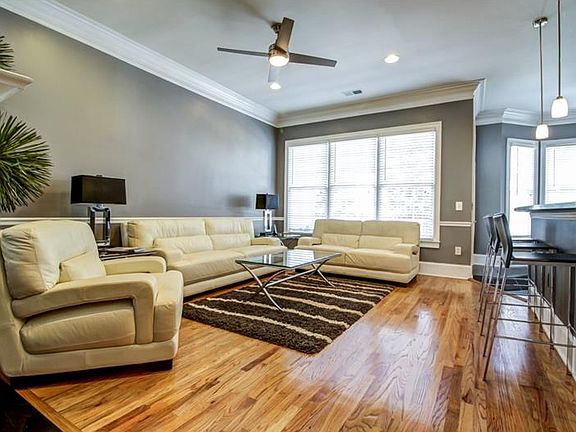 Luxurious Townhome Atlanta Living! The 4 Levels along w/the 9 & 10 ft Ceilings are Open & Flooded w/Natural Light. 2 Main Floor Living Spaces Open to Kitchen w/Long Breakfast Bar, Granite Counters, & SS Apps. Master Suite features Trey Ceiling, Hunter Douglas Remote Room Darkening Blinds, Spa-Like Bath & Walk-In Closet. 3 BR w/3.5 Baths w/Top of the Line Fans & Storage Closets on Every Floor. Basement w/Full Bar. Private Front & Back Patios & 2 Car Garage. Be sure to check out Community Pool! Less than 1 mi to The Fox, World of Coke, GA Aquarium, GT Football Stadium.