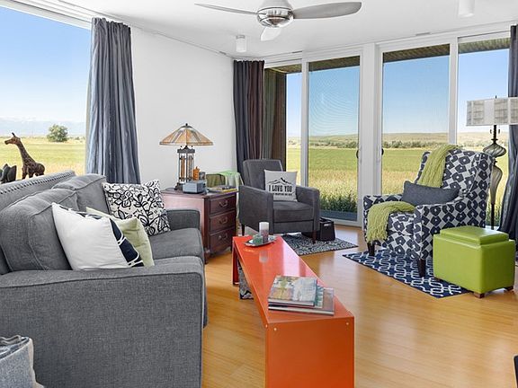 We love this WEE house! Contemporary, no-maintenance, energy efficient design is a hallmark of Alchemy Architects, "WEE Homes". The Beartooth Wee home is located on over 20 irrigated acres just a mile outside of Roberts. At 1229 sq. feet the home is a marvel of thoughtful design & high end finishes. The open floor plan is soaked in natural light & while wee it has a big home feel. No sacrifies on creature comforts; with bamboo wood floors, 2 sided gas fireplace, lots of built ins & that wonderful wall of windows featuring Beartooth Mtn views. The 420 sq. foot studio guest house is the perfect compliment for guests, office or an inlaw suite & both homes are handicap accessible. Detached pole barn with room for cars, atvs, shop space & more. Animal friendly where you can work comfortably from home with good internet service. On a school bus route only 40 minutes to Billings. SWEET!
