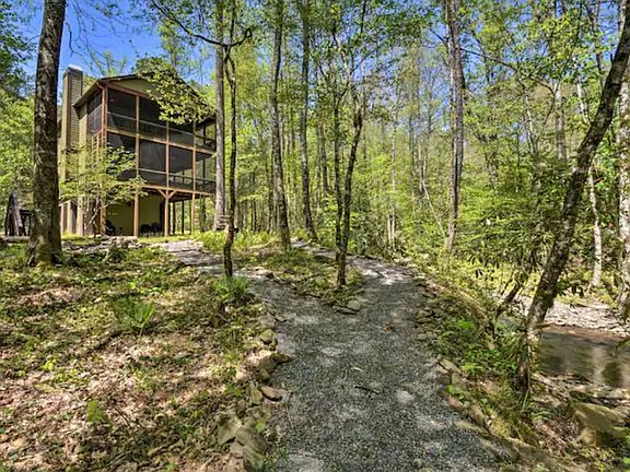 This beautiful custom-built cabin retreat is nestled on 2+ acres of land. It has only been owned by two very meticulous and proud owners. Your cabin overlooks the rushing creek, accessed by private walking paths and a large fire pit area. Enjoy the soothing sounds of multiple creeks while grilling on the large main level covered deck or coffee in the morning from the private covered deck off the master bedroom. This unique home offers 3 bedrooms, 2 bathrooms, and an open floor plan with great room and soaring cathedral ceiling. Settle in for the evening in front of the stacked stone fireplace, double glass sliding doors leading to the main deck, surrounded by hardwood floors and custom woodwork throughout. Open kitchen with granite countertops and stainless appliances, loft area off the master bedroom, office, laundry on main floor, and a covered carport. You or your friends/extended family can bring a camper or RV and hook up to the full 220 electric/water/sewer hookup right on sight. Head to nearby towns of Hayesville, Murphy, and Blue Ridge. Only minutes from Lake Chatuge, Hiawassee River, fishing, boating, local breweries, championship golf, hiking/biking trails, and full casino gaming. A secluded gem, on the water, but near it all.