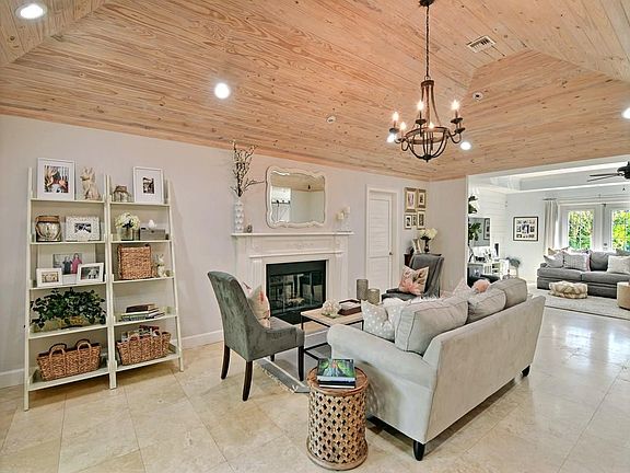 Extremely private, 3BR/3BA, 2,800+/- sqft, open floor plan, kitchen/center island, lv rm, fam rm/din rm. Lots of storage. Vaulted ceiling, fireplace, large lot (room for a pool). Metal roof, 2 car garage, gated. Re-built in 2000 updates made. Southern facing back yard. Sizes are approx/subj to error.