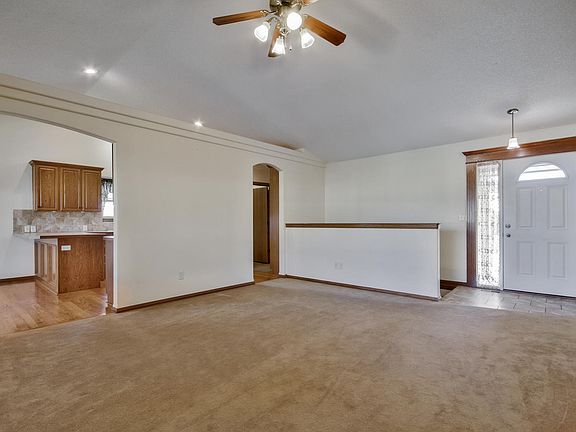 DO NOT CALL REALTORS LISTED. Call owner at 580 991 9540 for this home For Sale By Owner. Low traffic, and everything you need is within a short drive or biking distance from this lovely 2,666 sq.ft. 4 bedroom, 3 bath home in upscale, quiet neighborhood. It's move in ready! Beautiful landscaping and well manicured lawn. Open kitchen with beautiful wood floors, updated laminate counter tops, Whirlpool appliances with GE refrigerator, all stay. You'll love all the cabinet space including the double pantry, slide out shelves and lazy susans! Separate laundry room on the main floor! Dining area is 10' x 11' and includes an eating bar for extra seating. Right off the dining area, you'll love having coffee in the morning on the covered composite deck which includes solar post lighting! Even the kitchen sink window has a lovely view! Living room has large window to view the deck and lets in lots of natural light and shows off the beautiful arched doorways. Pella windows let in lots of natural light, and are beautifully custom wood trimmed! This home includes Pella storm and sliding patio doors too! Separate Master bedroom with en suite. Two sinks and so much storage! Closet is large enough for two wardrobes! There's a wide staircase going to the basement. 56" Sony HD TV with Bose surround sound and slate top pool table that looks like it was made for the space are negotiable. Beautiful Electric start gas fireplace is the focus in this family room. Two more bedrooms (one with walk in closet) and another bath complete the finished basement with view out windows. Outside you'll appreciate the extra wide finished patio area below the deck. A great place for a fire pit! 3 car garage with insulated doors, finished walls, built in cabinets and epoxy floors. Sprinkler system with well and upgraded sump pump backup system. There is even a playset for the kids that is negotiable. Come see your next home. Call 580 991 9540 for your private showing.