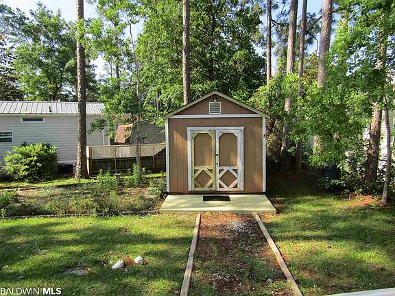 Great Park Model on 2 lots in Spanish Cove! 2004 Chariot Eagle. 1 Bed & 1 Bath. Inside stackable washer & dryer. 12x38 Covered Porch. 12 By 30 of that porch is screened. Brand new metal roof. Double concrete driveway. 2nd lot has very nice storage shed. Does have RV hookups. Corner lot. Spanish Cove amenities include year round pool, fishing pier, tennis courts, 2 clubhouses & 24 hr security. Close to the beaches. Lillian has a public boat ramp.