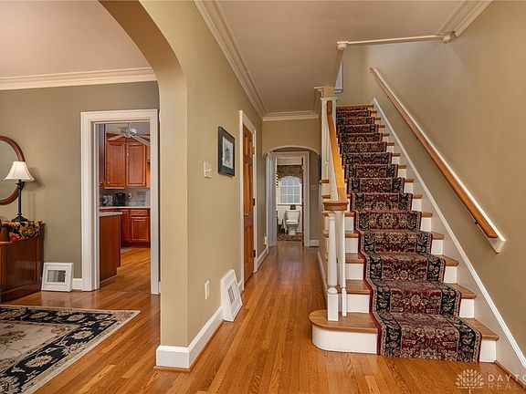 Welcome home to this classic 2 1/2 story brick colonial! As you step foot into the gracious center entrance you will be wowed by the beautiful hardwood floors throughout! Large living room with fireplace with ventless gas logs and crown molding which opens to sun drenched office/mudroom with Sun Touch heated floor, built in book cases, Pella windows and Pella sliding glass door leading to the private backyard with paver patio. Remodeled gourmet kitchen with loads of Maple cabinets, granite countertops, stainless steel appliances, and cozy breakfast room. Large dining room for entertaining family and friends and 1/2 bath complete the first floor. 2nd floor offers a large primary bedroom with en-suite with tiled shower, tiled floor, and updated vanity, decorative fireplace, built in bookshelf, new closet, and cozy window seat. 2 additional bedrooms and full bath with new vanity top complete the 2nd floor. 4th Bedroom is on the 3rd floor with new lighting and carpet 2019 and custom windows which is perfect for a teenager. Professionally finished lower level 2016 with added full bath, built in book shelves, glass block windows, multiple storage closets w/custom organizers, LVP flooring and carpet. Extended 2 Car Garage with a fun heated room that can be a mancave/Office/kids hangout. This desirable Location offers easy walking distance to the Oakwood Community Center and pool. New Vinylmax windows 2018, Attic windows 2018, attic insulation 2010, new sump pump 2018, water heater 2022, freshly painted throughout 2021-22, new chimney cap, crown, and waterproofed 2022, new front downspouts 2022, Updated electric service in house and garage. This home has had many updates throughout the years don't miss out on this beautiful Oakwood home!