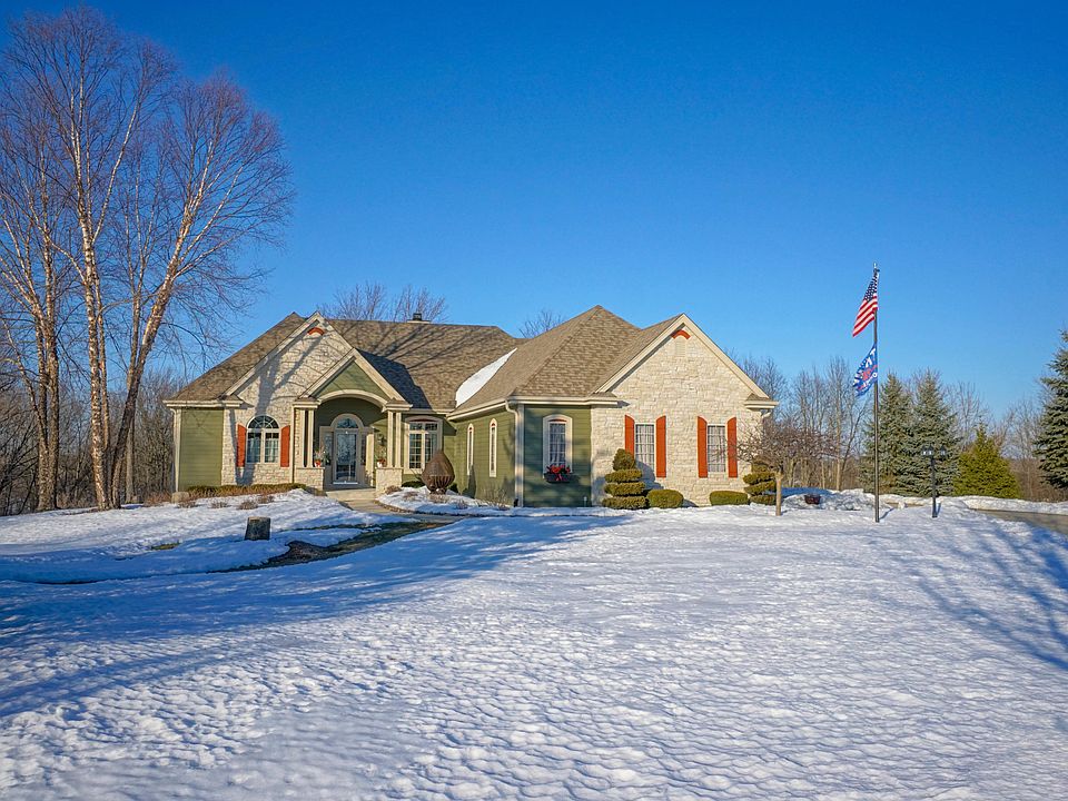 Incredible luxury ranch home on a gorgeous 1.6 acre end of cul-de-sac lot overlooking conservancy! Enjoy approx. 4000 sq ft of living space with the beautifully finished walkout lower level. Main level offers gourmet kitchen with hickory floors, granite breakfast bar, and high end appliances included. HUGE pantry. Great room has 2-sided gas/natural fireplace. Master suite includes 2 large walk-ins and luxury bath with tub, oversized shower, and dual sink vanity with TV behind mirror. Relaxing screened porch with amazing nature views. Lower level includes a large family-rec room with wet bar, spa bathroom with steam shower, exercise room, theater room, 4th bedroom-office, and tons of storage space. 2x6 construction with 300 amp service. Borders 10 acre subdivision conservancy!
