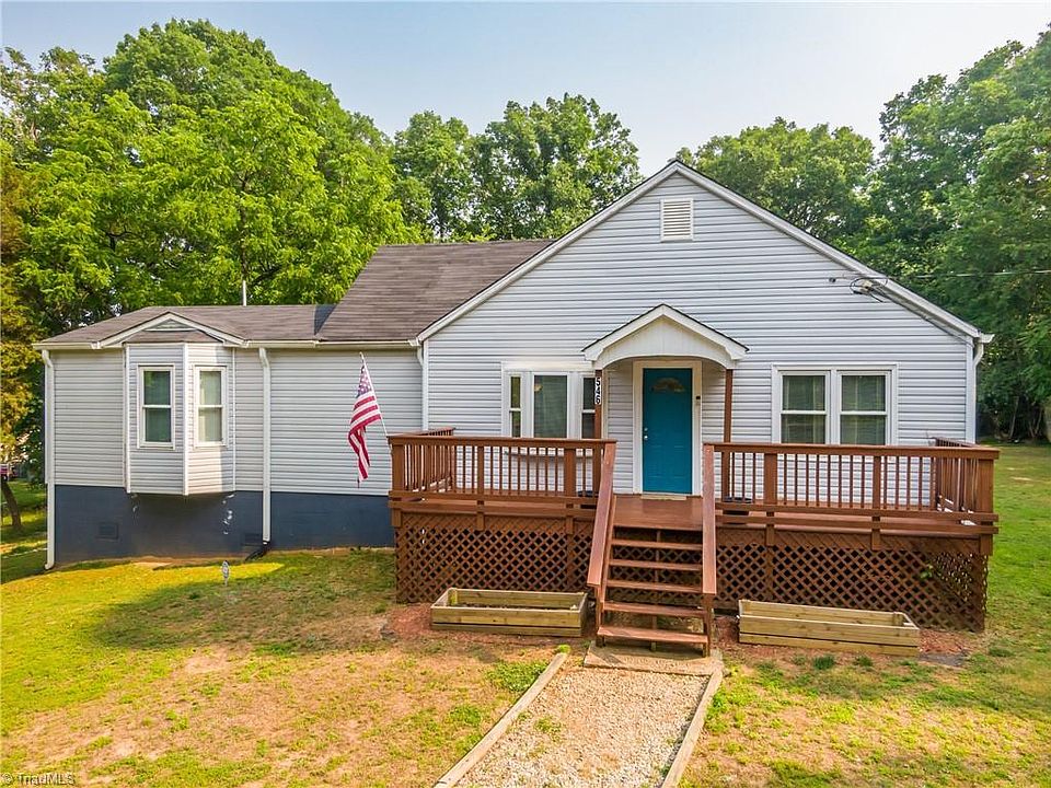 Remodeled home conveniently located in Kernersville with 3 bedrooms and 2 and a half baths. This home offers a nice sized yard with a covered front porch and a back deck. Located just minutes to major highways, shopping, schools, and restaurants. No records of permits on file from previous owner remodel. There is an old kitchen in the attic that is no longer in use. Per DOT, road will be widen and sidewalk added in 2025. See attached document for basement repair. Being sold AS-IS. See agent only notes.