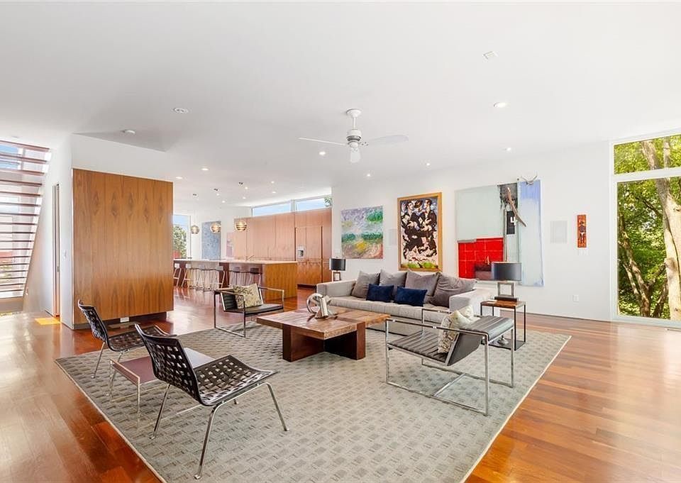 Nestled in the heart of Old Fourth Ward, this custom-built modern marvel was thoughtfully imagined by renowned architect, Scott West. Overflowing with architectural intrigue, this is the largest-ever modern single-family home built in O4W and is one of the few exclusive residences providing direct access to the Freedom Park Trail, peacefully connecting this modern oasis with the Beltline just 2 blocks away. This trophy home is the envy of the neighborhood with a rare 3-car garage + storage, coveted off-street parking and spacious backyard retreat with room for an in-ground pool. Sleek modern detailing starts from the outside in with the awe-inspiring exterior glass curtain wall gracefully integrated with standing metal seam siding and Brazilian Walnut accents. Luxury is truly in the details across the four distinct levels of living space plus a dramatic rooftop terrace with skyline and treetop vistas. Upon entry you are greeted by an iconic floating stairwell drawing you up to the main living level anchored by the stunning custom kitchen. Dramatic hand-crafted cabinetry conceals hidden appliances with book-matched walnut panels. Oil-Finished Brazilian Walnut flooring seamlessly connects the kitchen with the spacious living room wired for a home theater. The dining room is truly designed with entertaining in mind, with in-ceiling speakers. Massive floor-to-ceiling windows flood these spaces with light and a gracious rear deck provides ample outdoor living space with hidden stairs leading to the yard and beyond. Ascend upstairs to find the private owner’s suite offering a zen-like retreat from the day-to-day with an oversized jacuzzi tub, massive steam/shower combo, two walk-in closets, sitting area and skyline views from a private balcony. This level also includes 2 additional bedrooms, a full bath, laundry room and even a loft. Up one more level to the 700sqft private rooftop deck outfitted with plumbing for a wet bar…if you can’t tell entertainment is at the core of this home’s design. Space is no concern with the entry level offering two foyers, 2 additional bedrooms, a full-bath and access to the garage. Not to be outdone the bottom floor is home to the day-light basement flex space offering you an abundance of opportunities. Truly an Atlanta home unlike any other from the custom designed interior with details abound and direct access to the most exciting Intown neighborhood from your doorstep. Whether morning runs to Piedmont Park, midday bike rides to Krog Street Market, or evening strolls to dinner in nearby Inman Park, this location and truly unique modern residence offers unparalleled access to all Intown living affords.