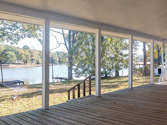 Peaceful neighborhood on charming Lake Harding right off of the big water. Spacious living/dining/kitchen layout with lofty ceilings, wood floors, & a massive brick statement fireplace. One bedroom and one bathroom on the first floor with two additional bedrooms and full bath in the upper story. Enormous bonus room with windows galore and unbelievable lake views! Flooring, interior paint, most light fixtures, blinds & stainless-steel appliances have all been replaced/updated in the last 2-3 years! No Carpet! Metal roof is 5 years old & HVAC was replaced last year. Generous floating landing and a smaller dock neighboring a small boat access plus see wall with water year-round. Abundant parking with oversized single carport & concrete wraparound porch on main home. Considerable opportunity for full time lifestyle or a delightful vacation haven. This is a 0.43-acre Georgia Power leasehold lot.