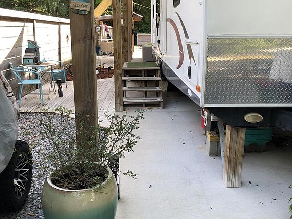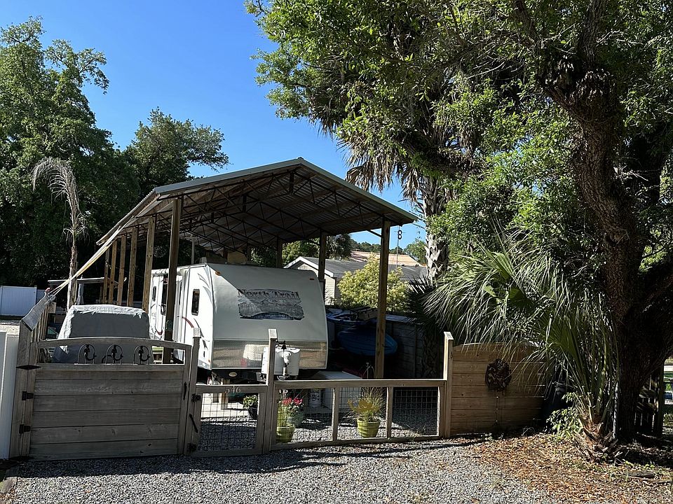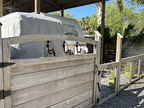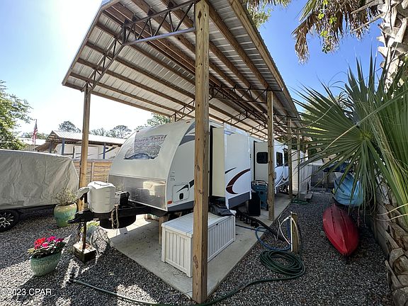 Incredible turn key and improved RV site in the Oak Grove community that is an easy golf cart ride to historic downtown Port St. Joe, FL. A MUST SEE! Amenities include: 60'x15' pole barn with steel reinforced concrete slab, 6' cypress fenced perimeter with removable front for RV, golf cart gate, landscaping, multiple cooking options, 24'x7.5' outbuilding that surrounds an outdoor TV area with full bath, marble floors and floor to ceiling tile, all doors and windows are impact glass and fully synthetic material doors and trim, Dekton countertop in outdoor kitchenette, Laundry room with stackable washer and dryer. Smaller storage options for kayaks and tools as well. Think of all the time you can spend enjoying the best that coastal RV life affords just in time for the season with no waiting around for improvements or delays from contractors. CALL TODAY!