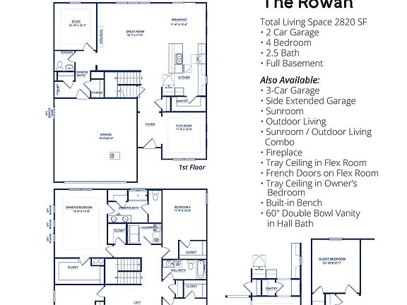 Designed for comfort and modern living, the Rowan showcases flexible living spaces and room for everyone. Featured in this home is a 3-car garage and full basement w/ rough in. Upon entering the home, you are greeted by a formal dining room with a butler's pantry leading into the custom kitchen. The kitchen showcases stained maple cabinets, quartz countertops, large island, subway tile backsplash, and stainless appliances. The great room, which is open to the kitchen and breakfast room, is anchored by a modern gas fireplace. Also on the main floor is a private study/home office. The second floor has a large loft, private owner's suite, 3 additional spacious bathrooms, laundry room, and guest bath. The owner's bath has a custom tiled shower and double bowl vanity. Additional upgrades include an architectural trim package, upgraded fixtures, lots of wood laminate flooring, and more!