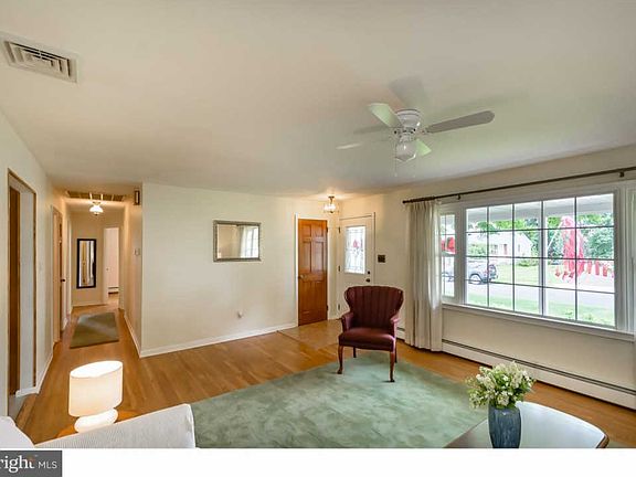 Welcome Home to living made easy in this fresh and sunny home tucked away on a quiet street in award winning Souderton SD. Relax on the covered PATIO enjoying the beautiful views of a flowering meadow, sunflowers, hydrangeas, mature trees and landscape plantings that surround this home. A covered FRONT PORCH welcomes you and a tiled entry greets you as you step into the bright and airy LIVING ROOM complimented by an enormous bay window and hardwood flooring. The warm and expansive EAT-IN KITCHEN includes a gorgeous custom oak, built-in corner cabinet, center island, solid oak cabinetry, pantry and ceramic tile flooring. Retreat to the MASTER BEDROOM with mirrored closets, hardwood flooring and a private MASTER BATH with stall shower. The extremely spacious FINISHED BASEMENT is perfect for entertaining, whether you are looking for a family room, man-cave, game room, play room, there is plenty of space to make it your own. The LAUNDRY ROOM includes the washer & dryer and a convenient laundry chute! There is also plenty of storage space to meet your needs. This home was lovingly maintained by a single owner and is move-in ready with fresh paint, newer roof and newer heater & C/A, off-street parking in the garage or driveway. Centrally located between the Lehigh Valley and Philadelphia in beautiful Franconia Township, Montgomery County. Come home to easy living!