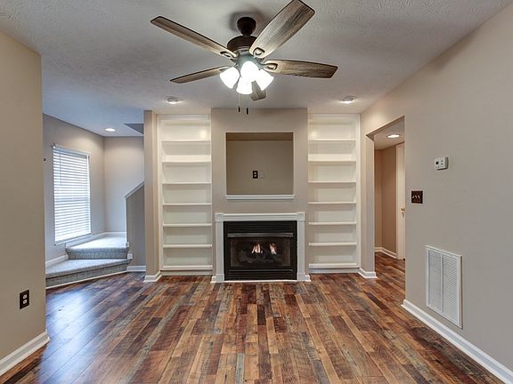 Enjoy low-maintenance carefree living in the Smokies with this nicely updated condo in a gated community just 5 minutes off the Parkway. The unit welcomes you into the living room with a gas log fireplace set into a wall of built-in bookshelves and new laminate floors underfoot. The eat-in kitchen has tile floors and white cabinets, and adjoins a professionally-installed sunroom perfect for enjoying your morning coffee. A full bath and under-stair storage closet round out the main level. Upstairs two generously-sized bedrooms share the second full bath plus a handy laundry closet with stack washer-dryer combo. Out front a covered porch leads to plenty of paved parking just steps from your door, and pedestrian-friendly sidewalks leading to the outdoor pool area as well as the riverwalk and clubhouse with fitness center and rec room. This is located in the Apple Valley area just off the Parkway and all "the strip" has to offer, plus easy back-road access for avoiding the tourist traffic. Though this unit has been used as a primary residence, similar units with the right appointments perform very well on nightly rental. The home has fresh paint, carpet, and window treatments throughout, as well as a new HVAC system and water heater, so all you have to do is move in!