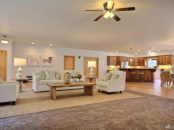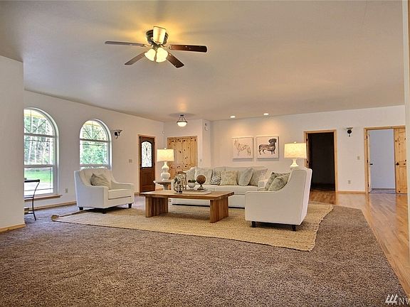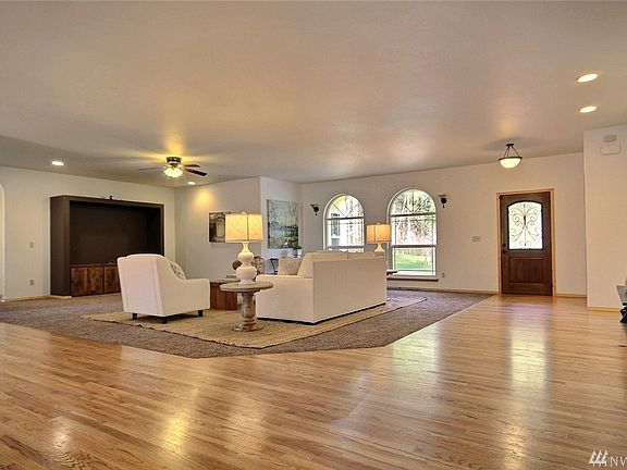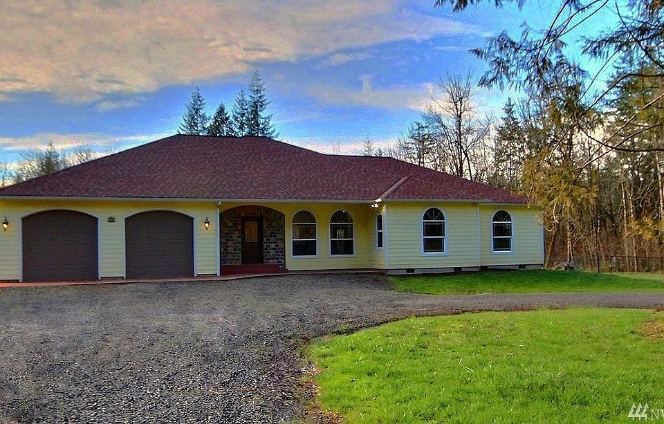 Private setting, 2694 sq. ft. open floor plan. 4 bed, 3 bath home on treed 11.5 +/- acres. Home offers very large rooms w/custom kitchen cabinets & hardwood floors as well as an island w/eating bar, dining rm w/patio access. Master bd features 5 piece bath & double door walk in closets, separate office/den. New floor coverings & fresh interior paint. Hardi-plank siding, oversized 2 car garage. Excellent location. Located between Portland & Seattle, 5 minutes off I-5 but w/a very country setting.