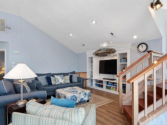 Location is paramount when buying real estate and it doesn't get any better than this semi-oceanfront (2nd row) location in beautiful Ocean Sands. Enjoy sunrises and amazing views of the Atlantic Ocean from this well cared for/ recently updated beach home. Offering 5 bedrooms, 4.5 bathrooms and 2,400 square feet along with expansive exterior decking and your own private pool and hot tub makes this property a must see. This reverse floor plan home offers a large open concept upper level featuring great room, dining area, kitchen and ships watch, complete with new easy care LV plank flooring . This level also offers a primary en suite bedroom with spacious, remodeled private bathroom including double vanities, custom tiled shower, and jet tub. The mid-level offers 2 additional guest bedrooms, a remodeled full hall bathroom, a convenient hall laundry and covered deck access to the hot tub, along with another primary en suite with large, remodeled private bathroom including jet tub, double vanities and custom tiled shower. The ground level offers the final en suite bedroom a remodeled private bathroom. Outside you will find a private pool with plenty of deck space, an outside shower adjacent to a shaded picnic area, the dry entry and carport, and exterior access to each level. This x-flood zone property does not require flood insurance, is located in between two convenient beach accesses, and is just a few lots from the community tennis courts. Enjoy the ocean views in this updated, freshly remodeled semi-oceanfront gem knowing the work has already been done!