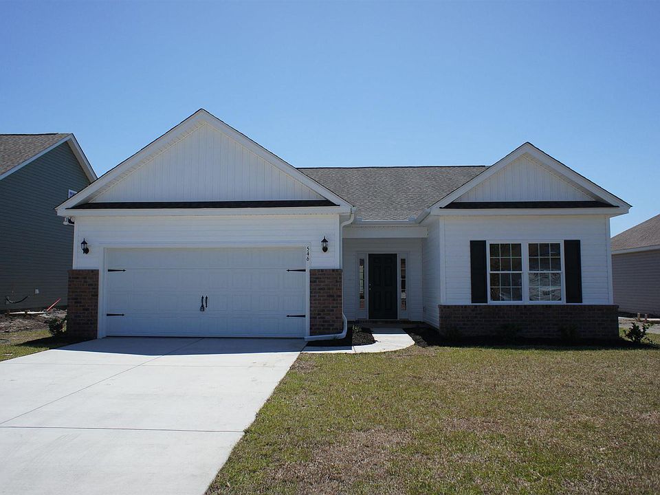 Beautiful Capers floor plan, currently under construction, in the new Ocean Palms community. This terrific 3 bedroom, 2 full bath, open floor plan home will have upgraded waterproof laminate flooring under the upgraded live dormer entryway and soaring vaulted ceiling in the family room, kitchen and dining area, and comfortable carpet in the bedrooms. Stainless appliances, staggered-height Shaker-style white cabinetry, a corner pantry and a convenient granite breakfast bar combine to give the kitchen the wow factor you're looking for, and the abundant recessed lighting and double window in the adjacent dining area floods the room with light. A French door leads to a covered rear porch with a large separate patio. The spacious master retreat features a tray ceiling, oversized walk-in shower, double sinks, and plenty of storage in the cabinetry and linen closet, plus a huge walk-in closet. Two additional bedrooms and a bath are tucked off on their own private hallway, for privacy, and there's even a flex room that could be a great office or craft room. All of the homes in Ocean Palms come standard with the luxury of natural gas (tankless water heater, gas heat and a gas range). The garage is completely trimmed and painted, with floored attic space accessed by drop-down stairs. Ocean Palms is conveniently located near shopping, restaurants, schools and world class medical offices and hospitals, and a short golf cart ride to Surfside Beach's gorgeous beach and the Atlantic Ocean. Other floor plans and inventory homes may be available, and CUSTOMIZATION OF FLOOR PLANS IS POSSIBLE!!! Community pool and cabana now open! Photos are of a completed, similar home and may have different features.