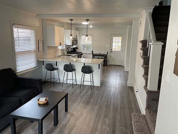 Modern 3-bedroom, 1.5-bath duplex 2 blocks from Idaho State University in the college neighborhood! The 1,500 sq. ft. unit features granite countertops, subway tile showers, and stainless steel appliances. All utilities are included with this unit including fiber internet. This property has a back patio with the a fenced backyard shared with the neighboring unit. The surrounding neighborhood is great for walking and is close to coffee shops, restaurants, and a grocery store. The maximum occupancy for this property is 6 people and 2 small pets. Street parking permits are available for $10 from the Pocatello Police station with proof of lease. Owner pays utilities and tenant is responsible for paying a flat rate $250 per month fee, however, additional charges may apply for excessive consumption. Utilities included in monthly fee: water, garbage, power, gas and Internet. Tenant is responsible for the removal of trash and snow removal. Owner is responsible for yard maintenance. No pets allowed. No smoking anywhere on the premises. This property can be offered as a furnished or unfurnished rental, decision to be made at a minimum of 1 week prior to move-in. Leases will be offered at 9 months or 12 months.