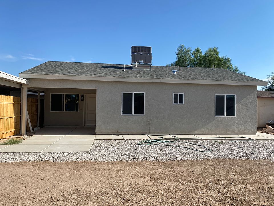 Brand New Single Family Duplex Move in ready! 3 bedroom, 2 bathroom, kitchen include stove, microwave, and refrigerator, central AC, tile floors, patio, storage One year lease agreement. owner pays for water. Renter is responsible for electric. No smoking allowed in the house.