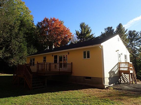 You will be impressed with this 1989 three bedroom two bath ranch! Wonderful southwesterly long range views right from the living room picture window. Kitchen and bathrooms have been updated including granite and stainless appliances in the kitchen. The basement is prime for building out more living space. Prior owner had installed a woodstove to supplement the oil forced hot water baseboard heat. There is an array of duct-work to distribute hot air from the woodstove throughout most of the house. The outdoor space is enhanced by a 10 x 10 front deck and a 12 x 14 rear deck. With 2 1/2 acres there's plenty of room for play space, chickens, goats or a few sheep. A 12 x 16 shed, more than 2 cords of wood, large gas grill and huge fire pit are included. What a great property!