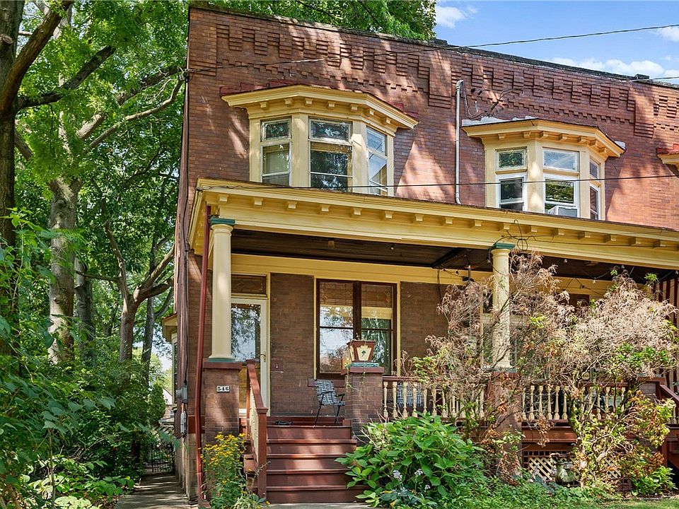 Look no further for your Regent Square oasis! This lovingly maintained red brick end-unit row home is cozily nestled in a park like setting near everything the neighborhood has to offer. This 2 bedroom (plus a bonus 3rd captive bedroom with substantial built-in storage!) 1 bath home showcases beautiful original details, including ornate leaded glass windows, untouched woodwork, hardwood floors, and a decorative tile-lined mission-style fireplace in the dining room. The large deck leads out to a private yard with room for a future rear parking spot. Recent updates include a new water heater (2023), new fridge (2022), new washer & dryer (2022), relined box gutters (2023), and a new roof for the back deck (2023). This home is within minutes of the shopping districts of Trenton (Madeleine’s & Workshop PGH), Biddle (Biddle’s Escape), and the heart of Regent Square on Braddock (Frick Park Tavern & D’s). Let’s not forget that it’s less than ½ a mile from a Frick Park trailhead!