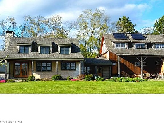 Stunning Solid Built Post & Beam Cape in a pastoral setting featuring an organic Apple orchard & sunny Southern views. A highly efficient 4-Bdrm, 3-1/2 bath with a solar hot water system for the heat and domestic. Incredible Great Room with a large granite fireplace and wonderful views to the orchard & sunset. Attached 1 car barn with private suite above and separate large storage barn. Well landscaped perennial gardens. Large unfinished dry basement has many possibilities. Just 2 minutes to Union Village.