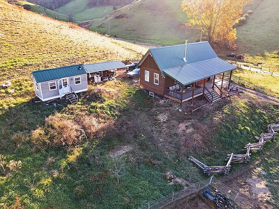 Take a look at this beautiful 10+ acre mini farm with a newly built home! Built in 2022, the 1 BR 1 BA home features hemlock wood siding, metal roof, and gorgeous hardwood flooring! The home also features an open kitchen, dining, and living room area as well as an extra office area. Outside you will find the perfect farm- Fully fenced 10.34 acres with 4 large barns-3 that have electric & water as well as work areas. The farm is set up for rotational grazing as well. There are organic planting beds with a water line that houses 5 faucets, spaced for easy watering. There is a creek that runs along the front of the property, with plenty of road frontage as well. This would be a great starter farm, or second home in the mountains. Quiet, peaceful setting with mountain views all around and no town taxes, yet only 5 miles to town. Come and see all that this place has to offer before it's gone!