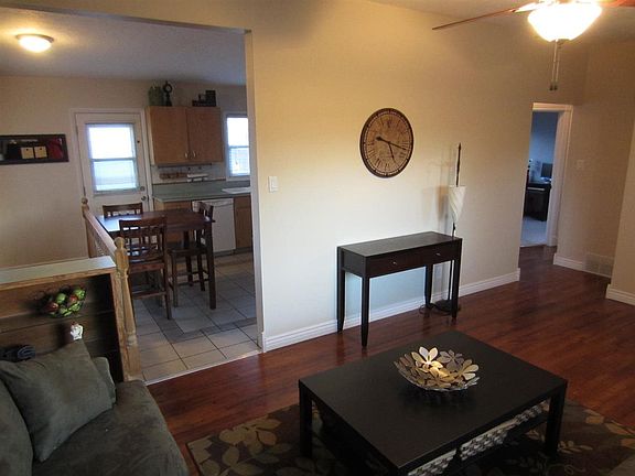 Very clean, updated home featuring beautiful hardwood floors, vinyl windows, 2 tone paint, and an automatic sprinkler system! Large double car garage or shop with access from the alley. This home is move-in-ready!