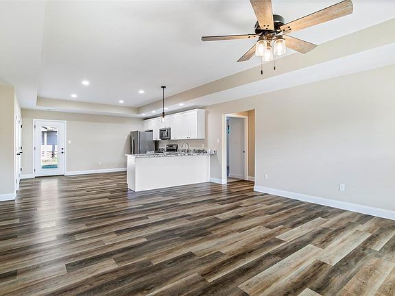 Discover your dream home in the 55+ Villas at Windsor Lane! This one-year-young villa boasts 1,572 sqft of modern living: 3 beds, 2 baths, an elegant kitchen with white cabinets, granite countertops, breakfast bar, and walk-in pantry. Enjoy luxury vinyl plank flooring, coffered ceilings, and a seamless open concept. Features include a main floor laundry, no-step entry, a spacious master bath with double sinks and walk-in shower, plus a large covered porch and rear patio. The oversized 2-car garage adds convenience. Embrace comfort and style in this inviting community!