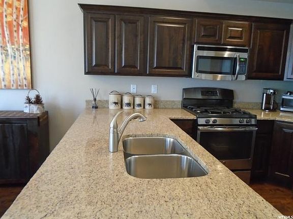Beautiful luxury town home situated within minutes of Snow Basin, Powder Mountain Ski resorts. Owners did many upgrades while building. Kitchen features gorgeous cabinets, granite counter tops and stainless steel appliances. Laminate wood flooring, tile and carpet. Corner gas fireplace in great room. Grand master bath, spacious master suite, vaulted ceilings. No neighbors behind. Separate driveway and 2 car garage. Vinyl fence around patio.