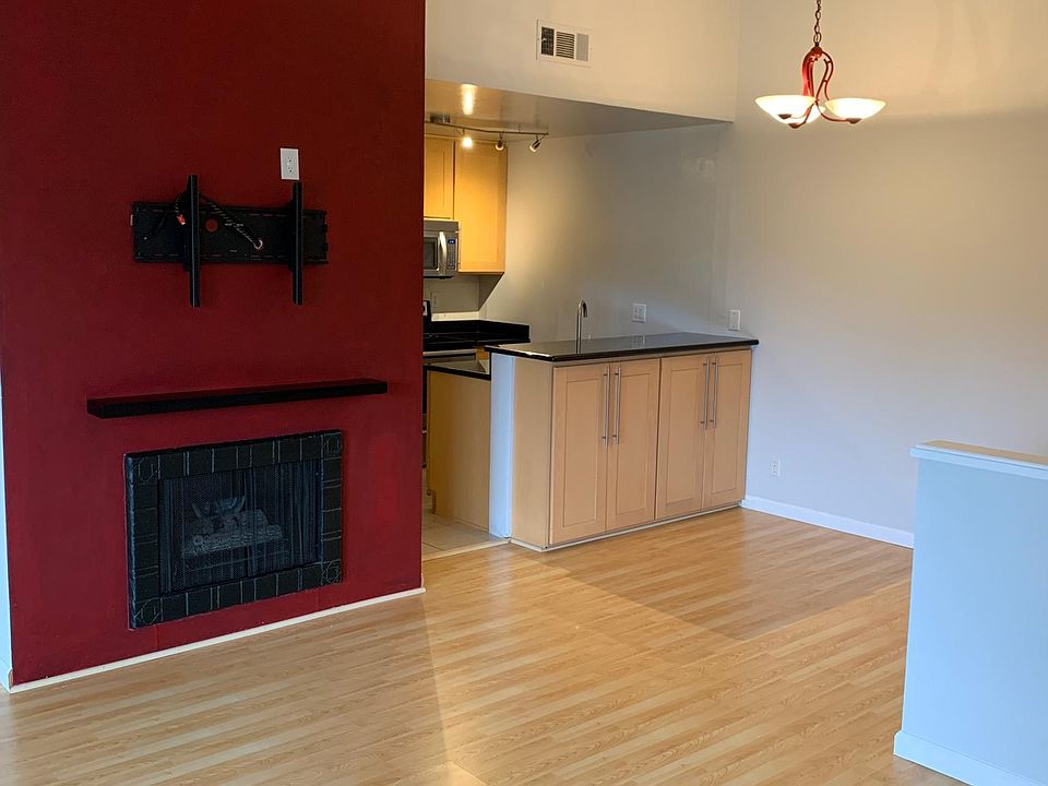 A renovated condo is available in the desirable Kirkwood Village. Just a few minutes walk to grocery stores, gym, Walgreens, restaurants, library, Clayton downtown, Concord Pavilion, hiking trails, etc. The complex features 2 swimming pools, clubhouse, tennis/basketball courts, and several onsite laundry facilities. Features: * Upstairs 1 Bedroom, 1.25 bath condo with a separate den/office * Tree-shaded balcony overlooking the park. * 1 covered carport with plenty of visitor parking. * Vaulted ceilings. * Maple kitchen cabinets with extra storage under bar area * Black Galaxy granite countertops in kitchen. Carrera Marble in bathroom. * Stainless steel whirlpool appliances (refrigerator, electric range, and dishwasher, microwave). * Maple Laminate flooring throughout, except kitchen, bathroom, entry way, which are tiled. * Gas, button-operated fireplace. * Central heating/air conditioning * Large walk-in closet. * Storage cabinets in master bedroom vanity area. * TV mount over fireplace included and ready for your flat screen! Already prewired for power, cable, and HDMI. * Large, separate walk-in storage unit just outside the front Owner pays: Water, Trash, Sewer. Tenant pays: Utilities 1 Year Lease Preferred Non-smoking