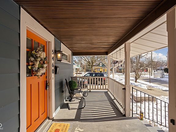 Welcome to Historic Irvington! Located five miles east of downtown Indy, this beautiful 1908 home offers 3 bedrooms, 2 full bathrooms, and historic character combined with modern renovations. Nestled on a tree-lined street with sidewalks, this charming property is a short 3 -10 minute walk to all that Irvington has to offer year-round, including annual celebrations, the Pennsy Trail, Lincoln Square Pancake House, Sahm's Tavern and Sports Bar, Jockamo Upper Crust Pizza, Strange Bird, Jack's Donuts, The Med Mediterranean restaurant, Starbucks, Irvington Vinyl & Books, and Irvington Historical Society. Step onto the inviting, large covered front porch and into a home that exudes old-world charm. Original hardwood floors flow throughout, complemented by ceramic tile in the upgraded kitchen and bathrooms. Grand great room with receiving area and decorative fireplace, XL dining room, and picturesque windows that flood the spaces with natural light. Modern, fully equipped kitchen features custom-made cabinets, quartz countertops, stainless steel appliances, a gas cooktop, microwave, and dishwasher, while the mudroom provides convenient built-ins for extra storage. Thoughtfully updated full bathrooms. Primary bedroom featuring a 6x6 walk-in closet. The private backyard offers relaxation or entertainment with a large wood deck, 13x13 paver patio overlooking lawn space, mature trees, gardening areas, and privacy fence. Updates: New roof (Jan 2025), updated electrical and plumbing, basement structural improvements and waterproofing, two sump pumps.