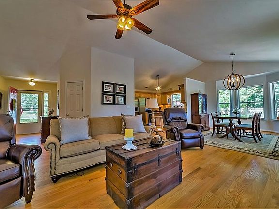 Beautiful move in ready ranch home in excellent West Forsyth location! Vaulted ceilings & lots of windows allow an abundance of natural light. A setting so private you won't need to cover those windows! Beautiful kitchen, updated paint colors, new lighting. Family rm w/ fireplace. Hardwood floors throughout, no carpet. Spacious Master w/ vaulted ceilings. Updated guest bath with walk in shower, no tub to climb over. Fenced yard, lovely landscaping. Extended stone patio w/ room for multiple seating areas; perfect place to relax! Close to Vickery & Big Creek Greenway.