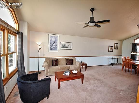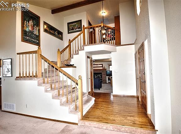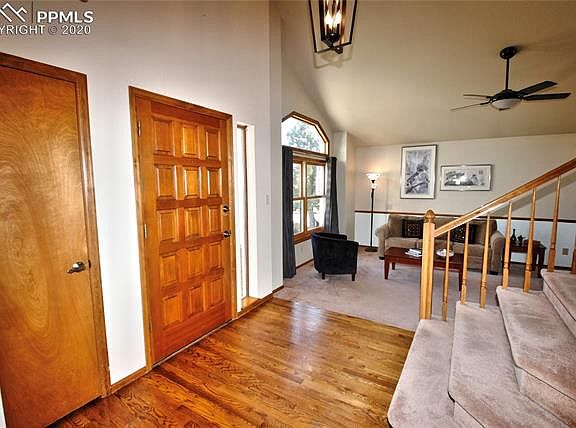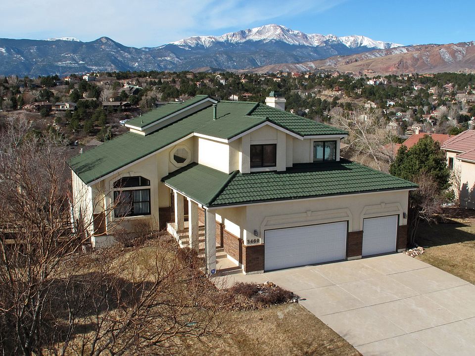 SPECTACULAR PIKES PEAK, MOUNTAIN AND CITY VIEWS from the full composite wrap around deck and almost all the windows including the walkout finished basement. Huge spacious floorplan with wood entry and kitchen. Open living and dining areas plus huge eat in kitchen. Dual head master shower and large sitting area in master suite. Stone coated metal roof and stucco exterior. Central A/C, custom awning, wet bar and SO MUCH MORE!!